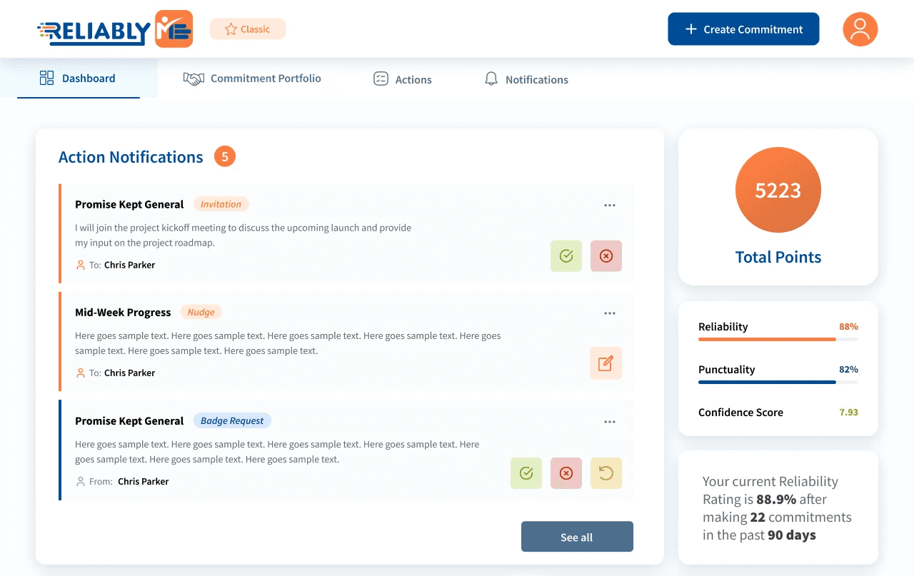 ReliablyME helps managers track commitments made by interns and staff. What was promised, by whom, and what needs to happen next.